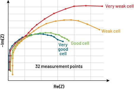 Broad frequency EIS (Electrochemical Impedance Spectroscopy) delivers deeper insight into the condition of your battery cells.
